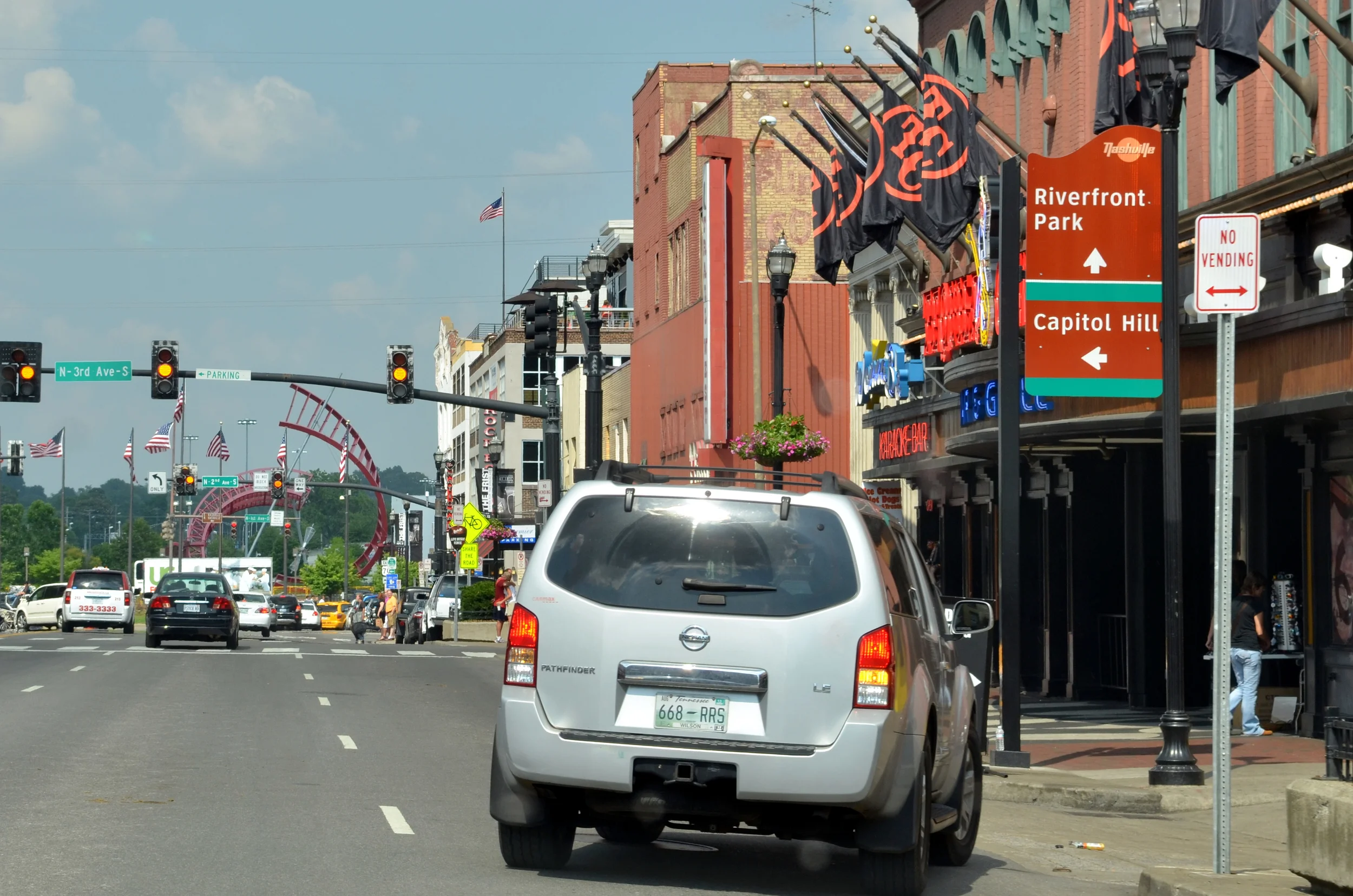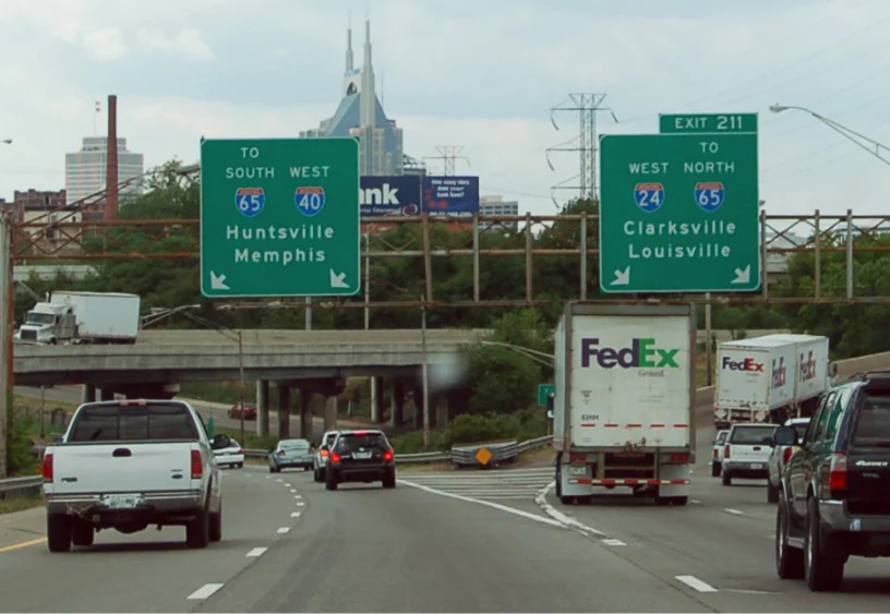The loop of expressways around Downtown Nashville has been infamous for decades. It’s where I-40, I-65 and I-24 collide, mingling cardinal directions along the co-numbered sections with seeming abandon. For example, you follow I-24 WEST from the airport to head to points north and EAST within the County (yes, over a longer distance I-24 does make its way west eventually). Driving south on I-65 from north of town, you come to its junction with I-40. Which way do you go to get to Nashville? No sign will tell you. In fact, so many drivers continue straight (heading west) at that point that the gas station-turned-window-tinting firm at the next exit gets so many lost drivers wondering where Nashville is that it stocks a good supply of Xeroxed maps to guide people back. Of course (ha ha ha), you take I-40 EAST at that junction to head due SOUTH to Downtown Nashville.
